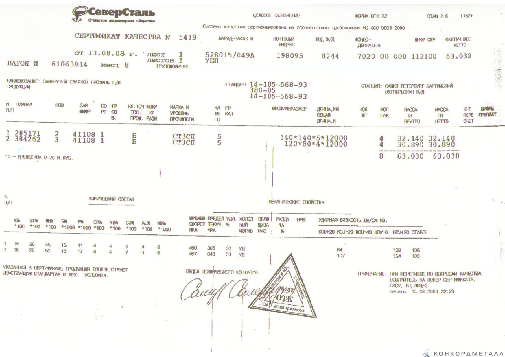 С каждой товарной позицией мы предоставляем все сертификаты и паспорта качества, а также товарно-транспортную накладную.