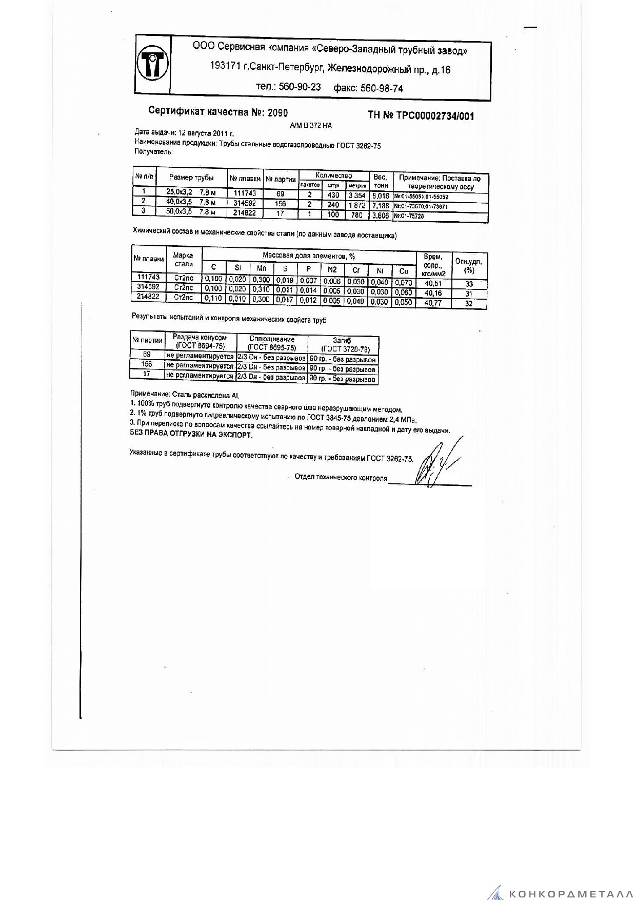 С каждой товарной позицией мы предоставляем все сертификаты и паспорта качества, а также товарно-транспортную накладную.